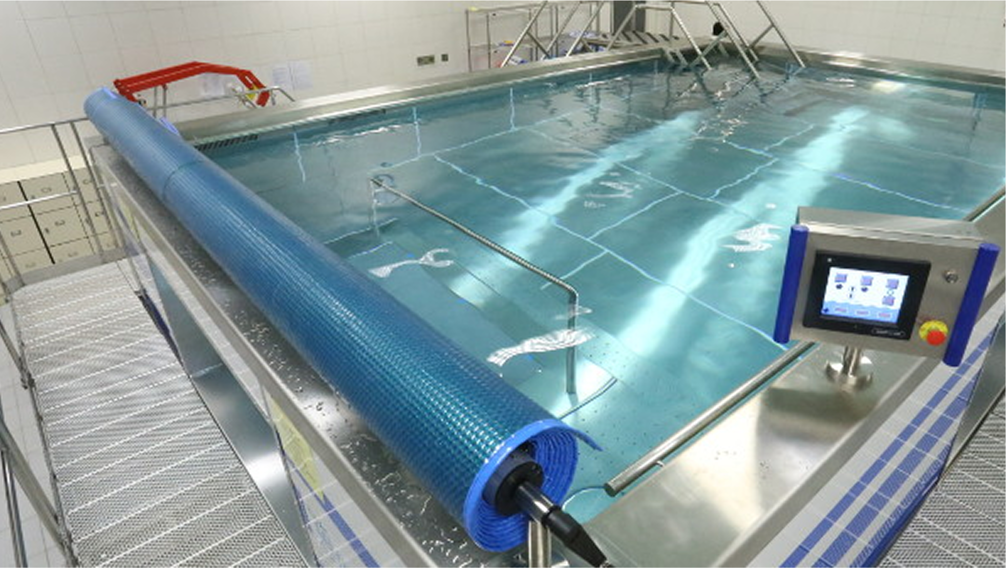 4×6 (m) modular pool equipped with underwater treadmill, ceiling hoist, pool cover, observation windows and underwater lighting. Location: Caritas Medical Centre in So Uk, Cheung Sha Wan, New Kowloon (Hong Kong).