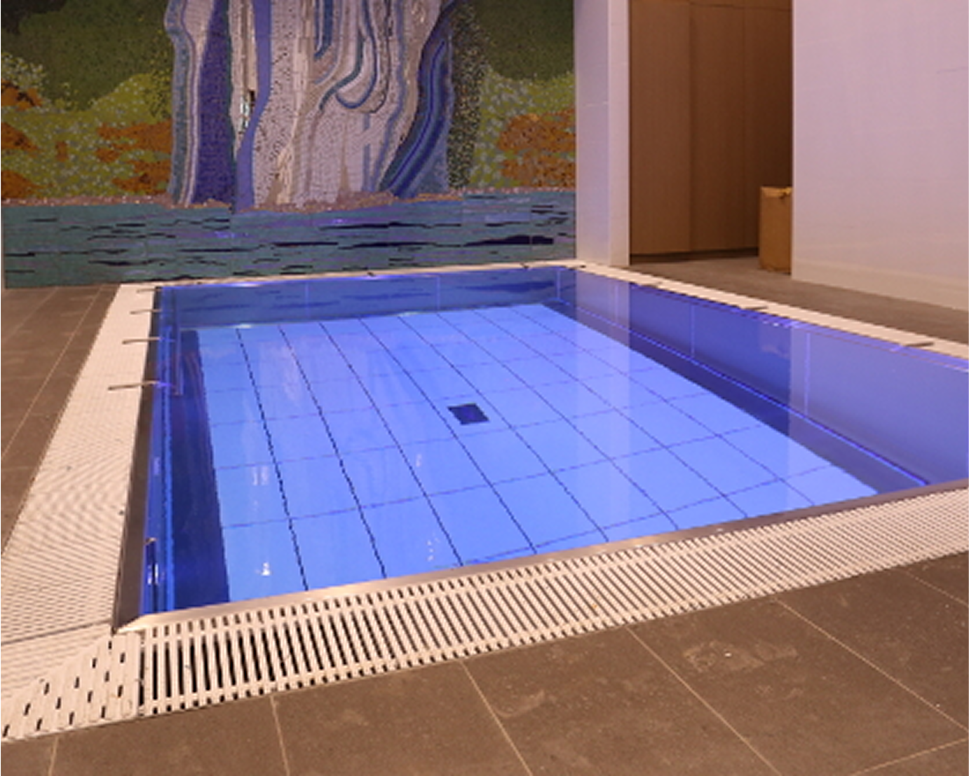 3×5 (m) sunken modular pool with movable swimming pool floor equipped with camera systems, colored lighting and traverse ceiling hoist. Located at the St. Joseph’s Home in Singapore (SG).